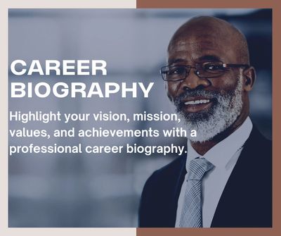 Establishing your authority in your field is about presenting well-crafted career materials that capture your accomplishments and draw interest from your audience. Your DNA sets you apart from others, and so does your professional experience. A career biography perfectly highlights what makes you different, your industry impact, and your unique achievements.